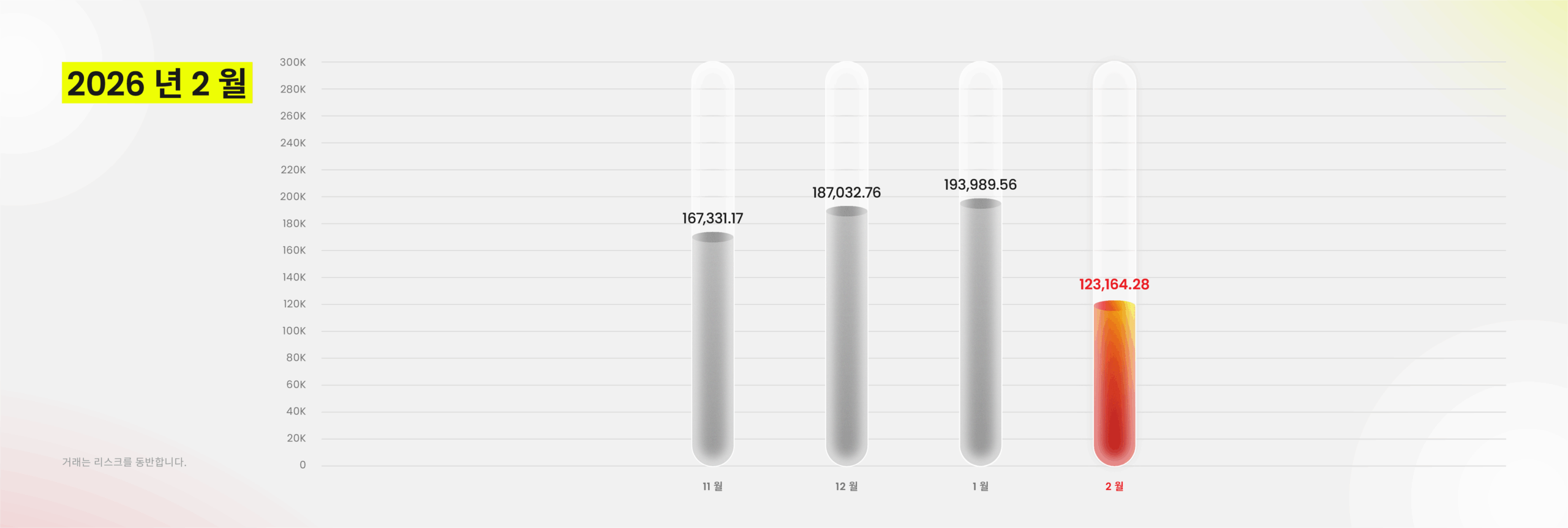 • 2월 총 거래량은 1,231.6억 달러로, 전월 대비 36.51% 감소했습니다.