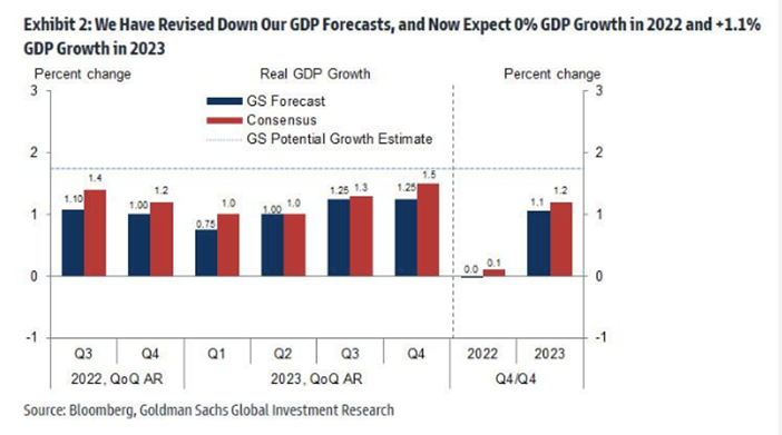 高盛在过去两周将联邦基金利率预测上调了 75 个基点,现在预期 FOMC 将在 9 月加息 75 个基点(之前预测 50 个基点),11 月加息 50 个基点,12 月加息 50 个基点,2022 年底最终利率将升至 4% 至 4.25%。