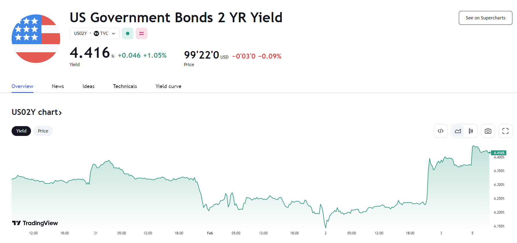 2 月 2 日,美国 1 月非农报告出炉,就业数据高于预期近一倍、失业率低于预期,且薪资增长加速。强劲的非农数据令市场降低了对美联储降息的预期。同时,市场因超预期的非农数据波动,美股收涨、美债收益率拉升、美元实现 5 周连涨。