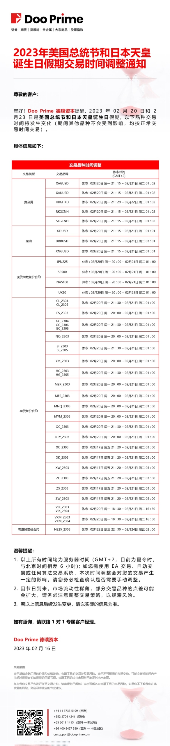 2023-02-16 | 产品消息 , 出入金时间 , 重要通告