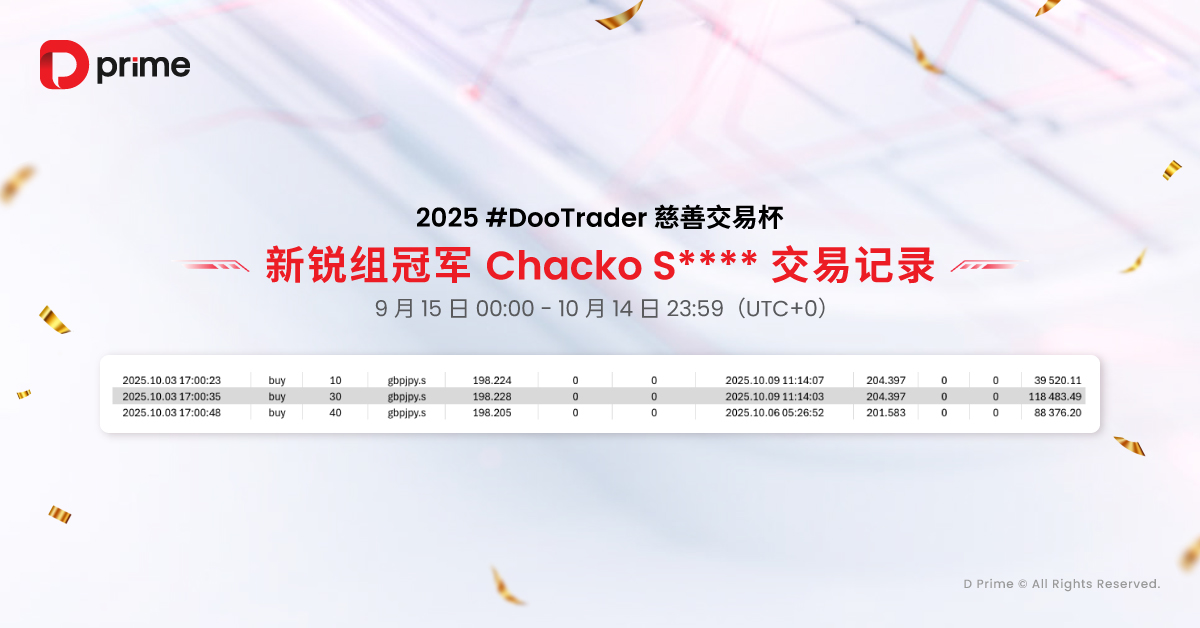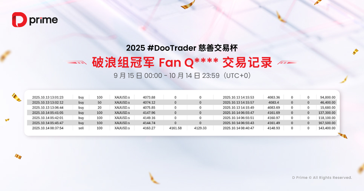 值得关注的是,2025 #DooTrader 慈善杯交易杯不仅是一场较量,更是一个传递爱心的公益活动。每当您在比赛中完成 1 手交易,D Prime 都将代表您捐出 0.1 美元,帮助改善贫困儿童的教育条件,让您的每一笔交易助力点亮更多孩子的未来。
