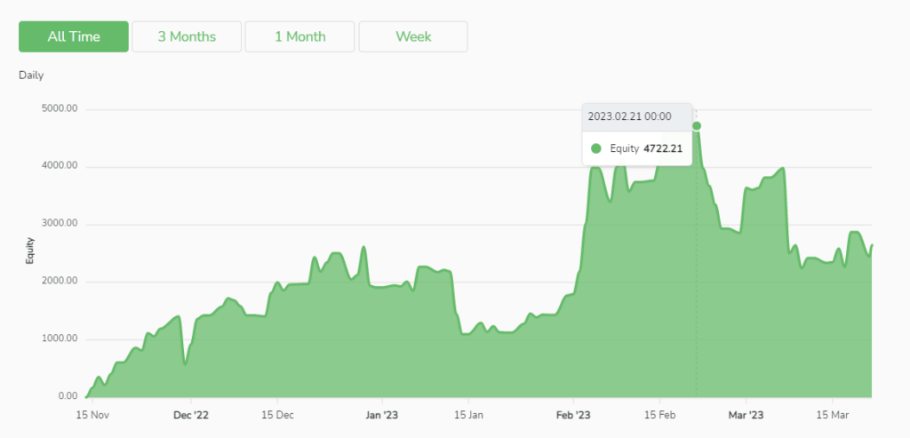 Tính đến thời điểm hiện tại, tài sản của nguồn tín hiệu trên đang nằm ở mức 2,181.24 USD, mặc dù tương đối thấp nhưng không có gì quá bất ngờ nếu so sánh với số vốn ban đầu bỏ ra. Từ đây, có thể thấy rằng, khoản quỹ của tài khoản này vẫn tồn tại một số rủi ro nhất định.