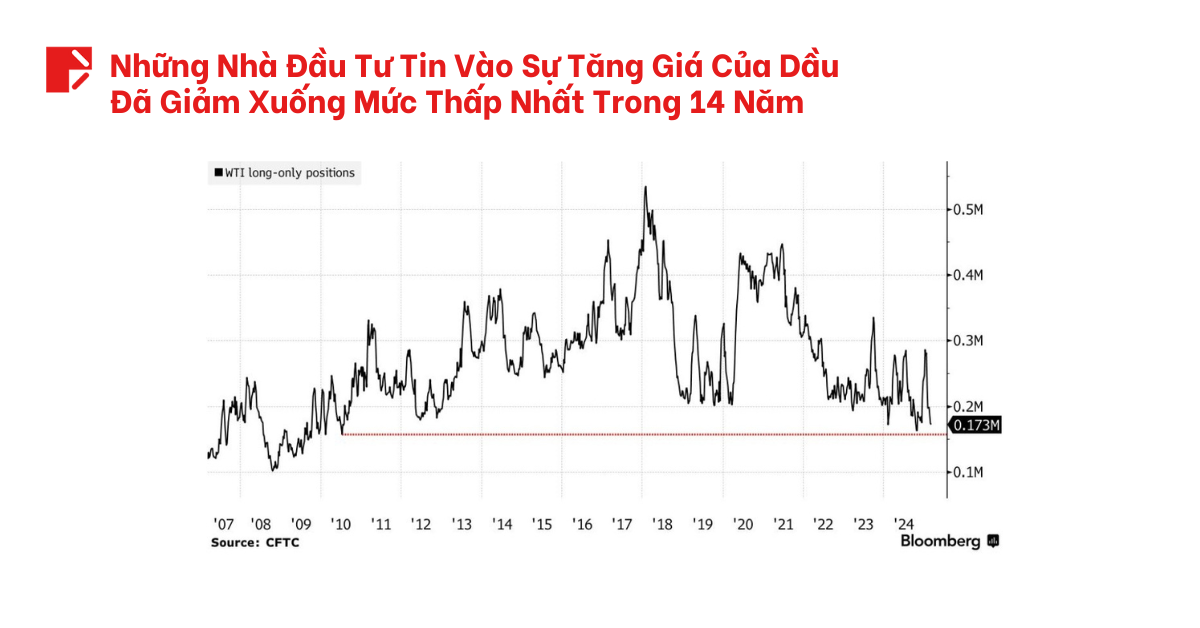 🔹 Các vị thế chỉ mua đối với dầu thô WTI giảm xuống còn 172,576 hợp đồng (ngày 4 tháng 3), gần mức thấp nhất kể từ năm 2010.